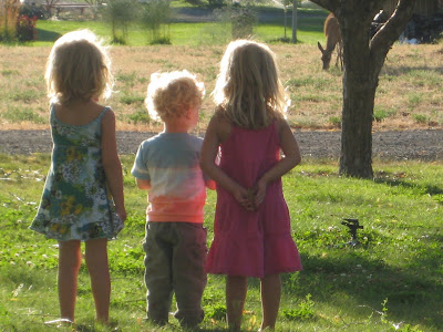 We had a little picnic at Heidi's house. Here, Heidi holds Bliss, while Grandma Judy reads to Calvin and Liam. My mom listens too.